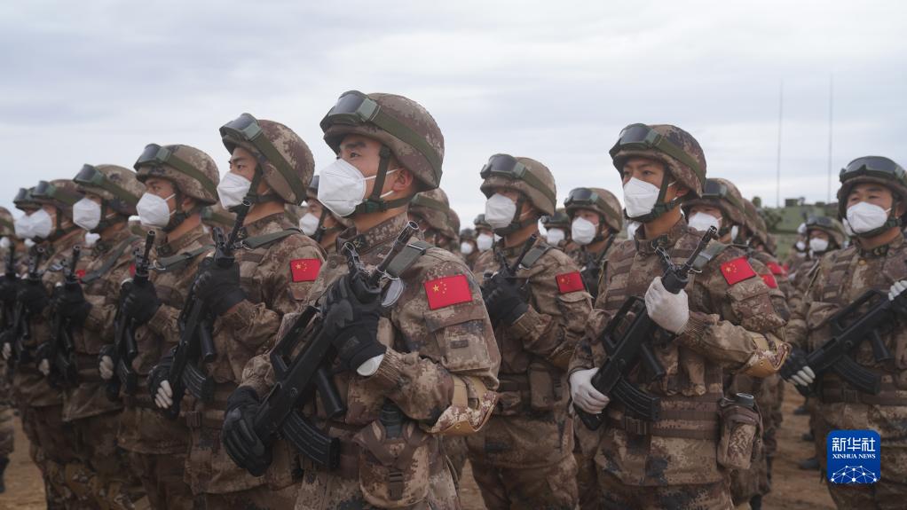 9月24日,在俄羅斯奧倫堡州東古茲靶場舉行的“和平使命-2021”上海合作組織聯(lián)合反恐軍事演習閉幕式上,中方參演部隊方隊整齊列陣。新華社記者梅世雄攝