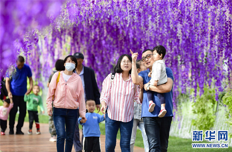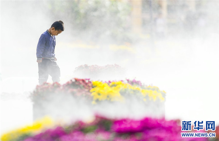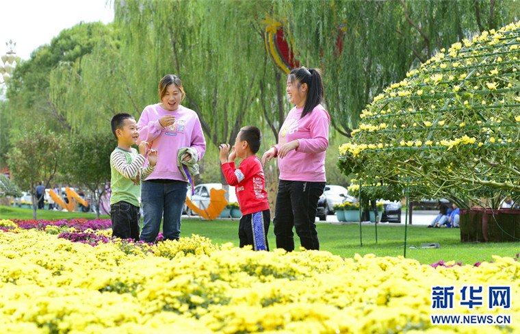 9月25日,小朋友在花叢駐足。新華網(wǎng)發(fā)(王正 攝)