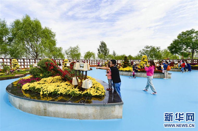 9月25日,游客在公園參觀花卉景觀。新華網(wǎng)發(fā)(王正 攝)