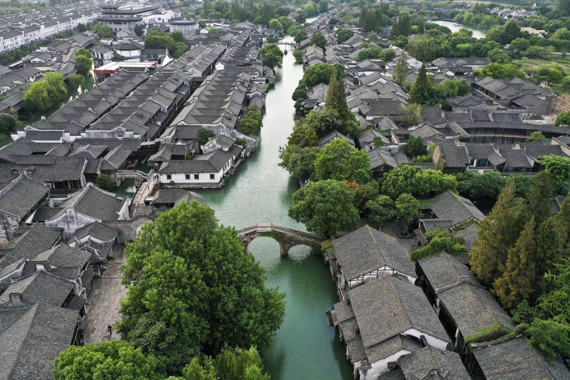 9月25日拍攝的烏鎮(zhèn)西柵景區(qū)(無人機(jī)照片)。新華社記者 黃宗治 攝