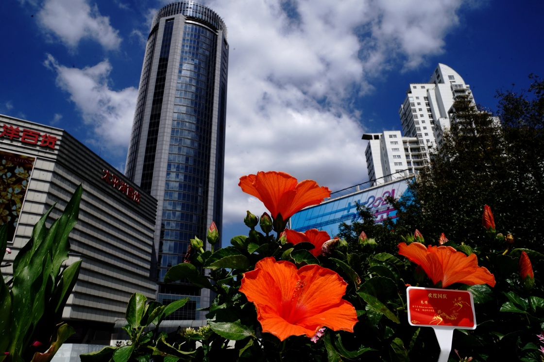國慶將至,鮮艷的五星紅旗和各種鮮花將上海街頭裝飾一新。