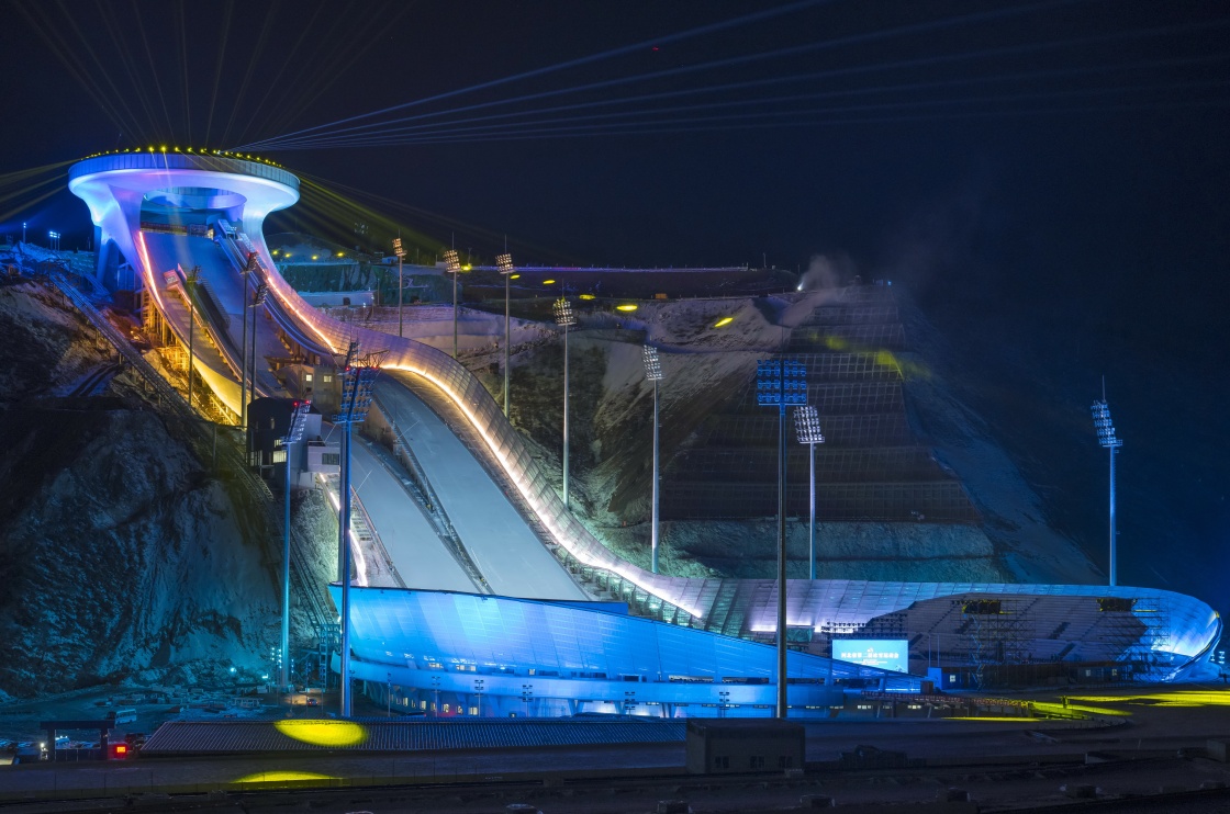 張家口冬奧賽區(qū),國(guó)家跳臺(tái)滑雪中心“雪如意”在青山環(huán)抱中舒展身姿,技術(shù)人員正進(jìn)行最后的收尾完善。100多天后,這里將迎來(lái)世界各地的奧運(yùn)健兒。