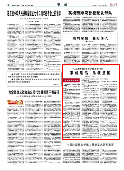 “家就是島,島就是國。開山島不僅要有綠色,更應(yīng)該飄揚著五星紅旗。”王繼才向王仕花提議,在開山島升國旗。