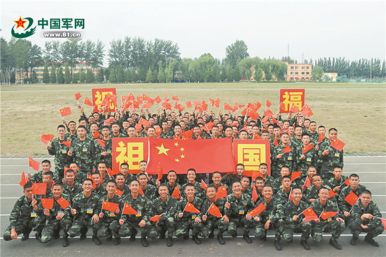 國慶節(jié)到來之際,武警北京總隊執(zhí)勤第四支隊新兵大隊開展“我和國旗合個影,我為祖國送祝?!被顒?,喜迎新中國72周年華誕。姜潤邈 攝