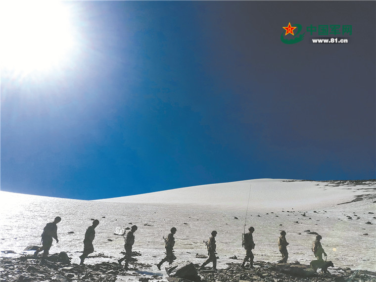 下午3時(shí)多,官兵經(jīng)過近5個(gè)小時(shí)的艱難跋涉,終于到達(dá)目標(biāo)點(diǎn)位,順利完成巡邏任務(wù)。站在界碑旁,他們面向國旗莊嚴(yán)宣誓:“邊關(guān)有我,請(qǐng)祖國和人民放心……”錚錚誓言,響徹雪域高原。