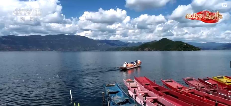 央視網(wǎng)消息:這里是位于川滇交界處的瀘沽湖。瀘沽湖是我國第三水深的高原淡水湖泊,最大水深105.3米,平均水深38.4米,湖面海拔2691米。秋天的瀘沽湖水光瀲滟,湖面上一朵朵白色的海菜花隨波搖曳。