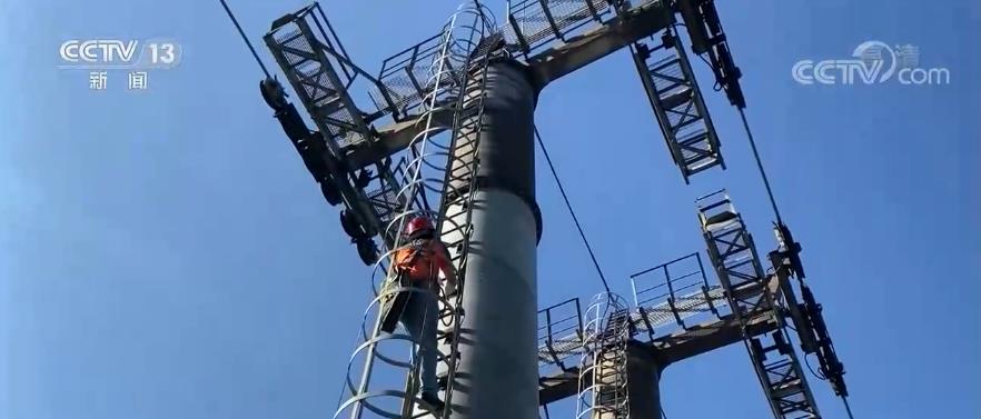 一個(gè)多小時(shí)的索道檢修結(jié)束后,韓曉偉來到發(fā)現(xiàn)異常的支架旁再次檢查確認(rèn)。順著檢修通道,韓曉偉徒手爬上離地近20米的支架頂部,進(jìn)行各項(xiàng)檢查。站在高高的支架上,仿佛置身云端,四面就是懸崖峭壁,纜車不斷地從身邊經(jīng)過,韓曉偉按步驟有條不紊地進(jìn)行著檢查。