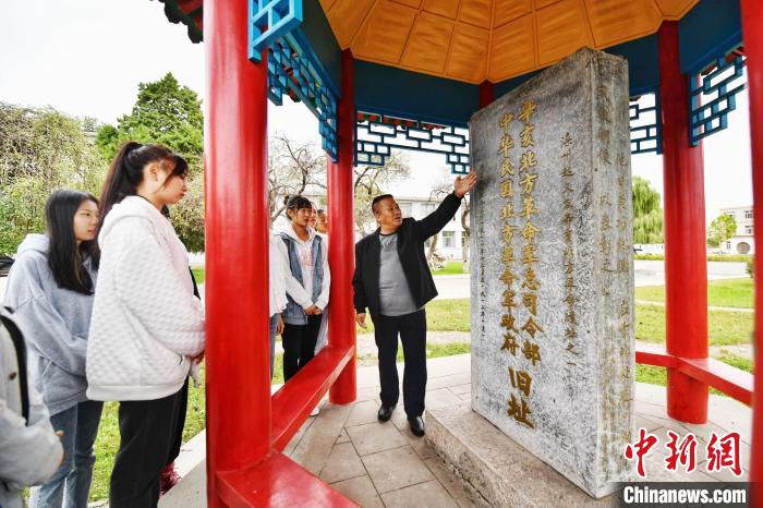 在校內(nèi)“思齊園”,劉建國帶領(lǐng)學(xué)生站在園里矗立的“辛亥北方革命軍政府司令部、中華民國北方革命軍政府遺址”紀(jì)念碑前,歷史仿佛觸手可及。