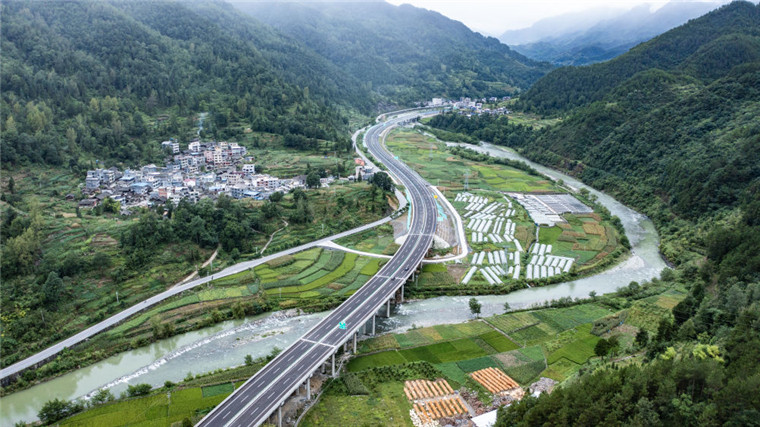 車輛行駛在秀印高速公路木黃至梵凈山路段(8月15日攝,無人機照片)。新華社記者 陶亮 攝