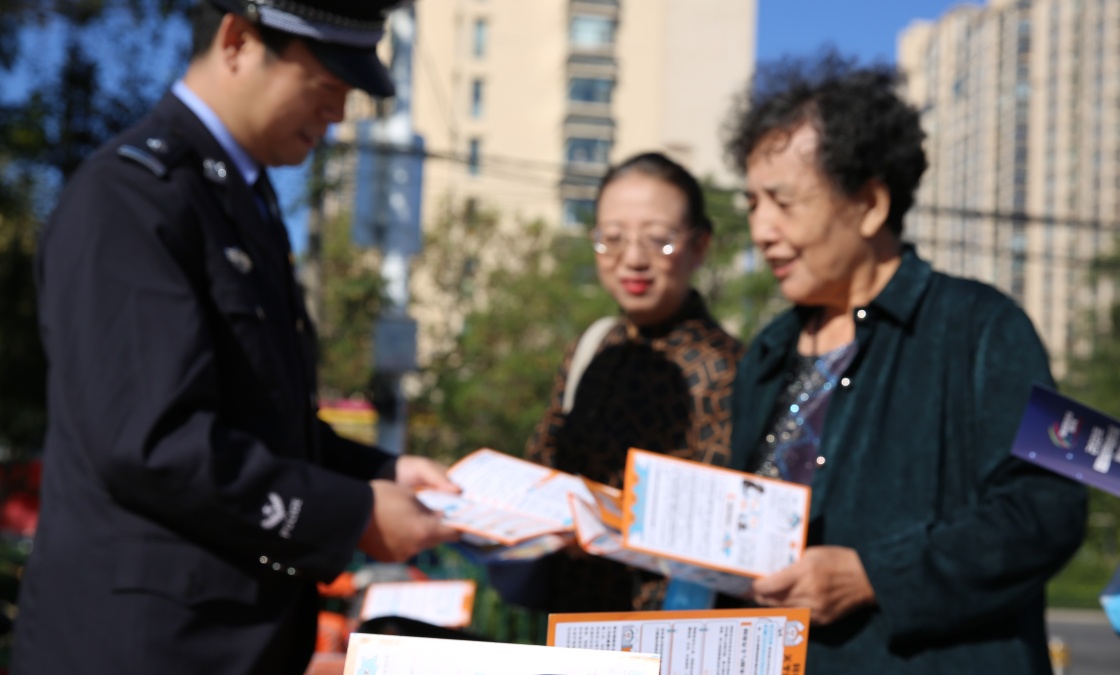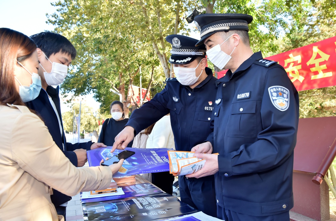 10月11日,在2021年國家網絡安全宣傳周滄州地區(qū)活動現(xiàn)場,滄州市運河區(qū)民警向市民宣講網絡安全知識。