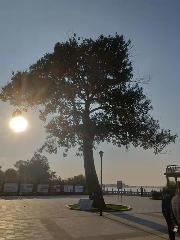陽(yáng)光晃得讓人有些睜不開(kāi)眼睛,“幸福桐”撐起了一方樹(shù)蔭,供游人遮陽(yáng)。樹(shù)前,書冊(cè)模樣的大理石上,刻著兩個(gè)鮮紅的大字:“福桐”。