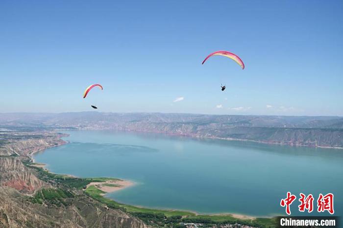 圖為滑翔傘運動員在甘肅劉家峽水庫上空競技。 (資料圖) 艾慶龍 攝