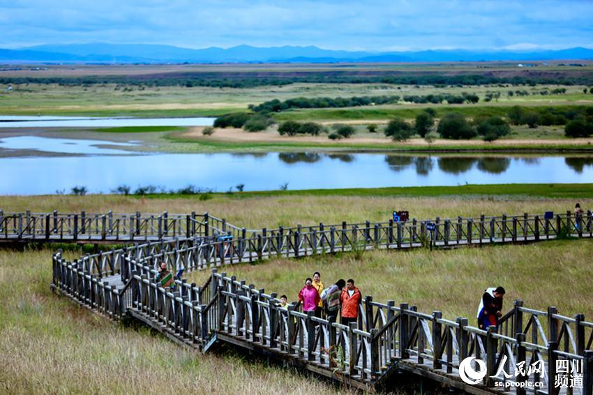 花湖生態(tài)旅游區(qū)是若爾蓋濕地國(guó)家級(jí)自然保護(hù)區(qū)的重要組成部分。若爾蓋濕地所涵養(yǎng)的水源,通過花湖等3個(gè)湖泊注入黃河水系。但由于歷史原因,以及近年來全球氣候變暖、地下水位下降等原因,造成了大量的水濕沼澤消失或退化成半濕沼澤、干沼澤。沼澤疏干、河溝斷流,湖泊蓄水能力下降,打破了濕地原有水系平衡,伴隨草原沙化、鼠蟲害加劇,致使高原沼澤濕地的生態(tài)功能大為減弱,加劇了區(qū)域生態(tài)環(huán)境的惡化?;ê缮鲜兰o(jì)70年代末的386公頃下降到2009年的215公頃。