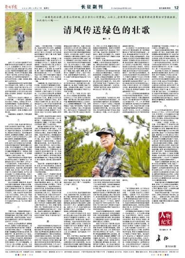 一曲綠色的壯歌,在青山間回響,在鄉(xiāng)親們心間縈繞。山嶺上,老將軍扛著鐵鍬、唱著軍歌的身影依舊堅毅挺拔,如此動人心魄——