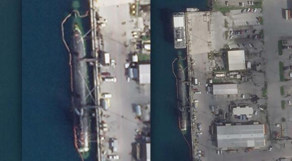 “戰(zhàn)區(qū)”網(wǎng)站早前稱,根據(jù)衛(wèi)星照片提供的信息,碰撞位置似乎更可能在潛艇水線以下,例如艇體底部。