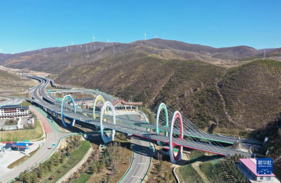 這是10月18日拍攝的延崇高速?gòu)埣铱谑谐缍Y區(qū)太子城互通式立交橋(無人機(jī)照片)。新華社記者 楊世堯 攝