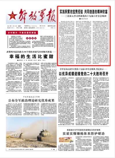 歷史是了解過去的教科書,也是走向未來的營養(yǎng)劑。全軍要認真學習貫徹黨的十九屆六中全會精神,系統(tǒng)深入理解“十個堅持”,把握歷史規(guī)律,增強歷史自覺,堅定歷史自信,從黨的歷史經(jīng)驗中汲取前進的智慧和力量,鼓足邁向新征程、奮進新時代的精氣神。要結(jié)合黨史學習教育,深切領(lǐng)悟中國共產(chǎn)黨與生俱來的革命勇氣和歷史擔當,自覺用黨的奮斗歷程和偉大成就鼓舞斗志、引領(lǐng)方向,用黨的實踐創(chuàng)造和歷史經(jīng)驗啟迪智慧、砥礪品格。必須深刻理解把握實現(xiàn)中華民族偉大復(fù)興這一宏偉目標,進一步增進政治認同、理論認同、情感認同;理解把握實現(xiàn)第二個百年奮斗目標的根本要求,在新的征程上更加堅定、更加自覺地牢記初心使命;理解把握黨和人民對軍隊的期望重托,堅定不移向黨中央看齊,不斷提高政治判斷力、政治領(lǐng)悟力、政治執(zhí)行力,增強“四個意識”、堅定“四個自信”、做到“兩個維護”,貫徹軍委主席負責制,全面提高能打仗、打勝仗的過硬本領(lǐng),為維護國家主權(quán)、安全、發(fā)展利益,為維護世界和平穩(wěn)定,為實現(xiàn)中華民族偉大復(fù)興提供堅強后盾。