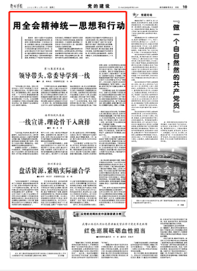 今年野外駐訓(xùn)以來(lái),該旅所屬部隊(duì)高度分散。黨的十九屆六中全會(huì)召開(kāi)后,為確保官兵能吃透領(lǐng)悟全會(huì)精神,該旅黨委召開(kāi)專(zhuān)題部署會(huì)進(jìn)行籌劃,將深入學(xué)習(xí)貫徹全會(huì)精神作為指導(dǎo)工作、抓建基層的重要內(nèi)容任務(wù),精心擬定學(xué)習(xí)計(jì)劃,按照逐專(zhuān)題深學(xué)細(xì)研、逐觀點(diǎn)消化領(lǐng)悟、逐波次扎實(shí)推進(jìn)的方式先學(xué)一步、深學(xué)一層。他們積極推動(dòng)黨委理論學(xué)習(xí)中心組學(xué)習(xí)成果進(jìn)班排,黨委常委送課到駐訓(xùn)一線,充分運(yùn)用微視頻、云講堂等多種載體,把課堂延伸到哨位、炮位、車(chē)廂等場(chǎng)所,迅速掀起群眾性學(xué)習(xí)熱潮。黨委常委與官兵面對(duì)面進(jìn)行宣講解讀,交流學(xué)習(xí)心得,還注重征求意見(jiàn)建議,研究完善下步學(xué)習(xí)措施。