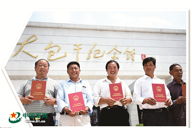 安徽鳳陽小崗村農(nóng)民展示領(lǐng)到的農(nóng)村土地承包經(jīng)營權(quán)證。