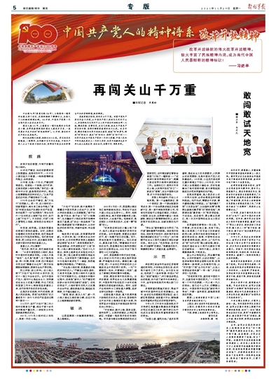 莫道前路多險(xiǎn)阻,再闖關(guān)山千萬重?;赝袊伯a(chǎn)黨百年奮斗歷程,從中國共產(chǎn)黨人找到馬克思列寧主義,并堅(jiān)持把馬克思列寧主義同中國實(shí)際相結(jié)合那一天起,解放思想、實(shí)事求是、走自己的路,就成為中國共產(chǎn)黨百折不撓、堅(jiān)持不懈探索真理的活力之源。40多年來,解放思想與改革開放相互激蕩,鼓起“闖”的勇氣、釋放“創(chuàng)”的活力、激發(fā)“拼”的勁頭、保持“實(shí)”的干勁——改革開放成為中國共產(chǎn)黨的一次偉大覺醒,中國人民和中華民族發(fā)展史上一次偉大革命,改革開放精神也在中華大地上生根發(fā)芽、茁壯成長,枝繁葉茂、碩果累累。