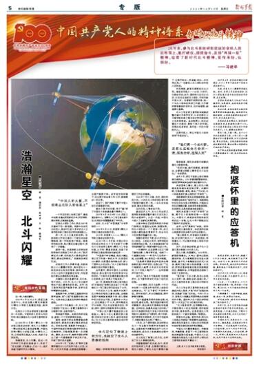中國的北斗、世界的北斗、一流的北斗。凝視展板,當(dāng)參觀者分享北斗故事時(shí),一定會(huì)提起那個(gè)應(yīng)答機(jī)。人們會(huì)記得,北斗人付出千辛萬苦,才取得今天的成就;人們會(huì)記得,那一天,科研人員抱緊的不只是應(yīng)答機(jī),也是中國北斗光明的未來。