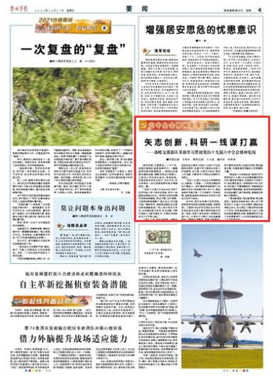 “惟創(chuàng)新者進,惟創(chuàng)新者強,惟創(chuàng)新者勝?!痹摬抗俦娂姳硎?,深入學習貫徹黨的十九屆六中全會精神,要始終堅持獨立自主、自力更生,不斷在科技創(chuàng)新上下苦功,加快推進部隊核心戰(zhàn)斗力建設和高質(zhì)量轉(zhuǎn)型發(fā)展,朝著建軍百年奮斗目標勇毅前行,以優(yōu)異成績迎接黨的二十大勝利召開。