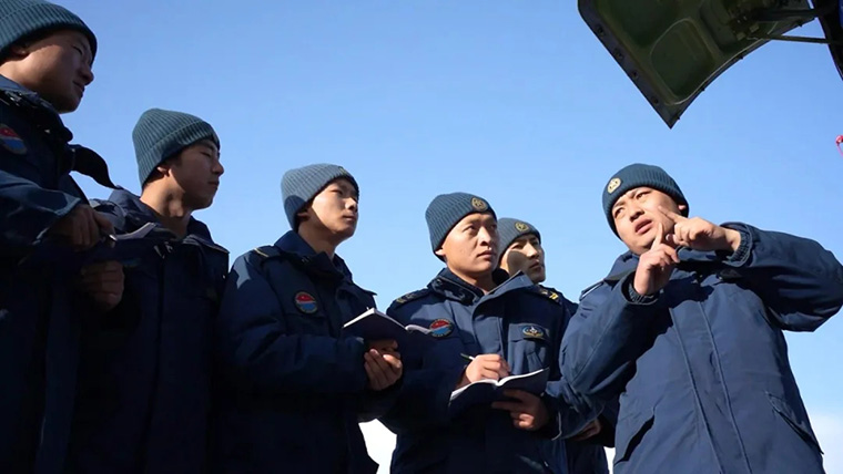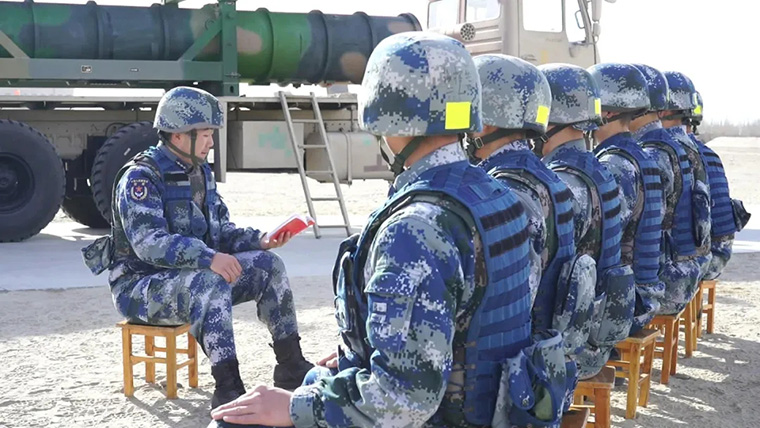 △大漠戈壁,空軍地空導彈某部正在組織年終軍事訓練考核,在連續(xù)裝退筒彈課目上,下士辛尚駿和戰(zhàn)友們緊密協(xié)同、默契配合,成績比上一次提升了整整30秒,打破了營里考核的紀錄。