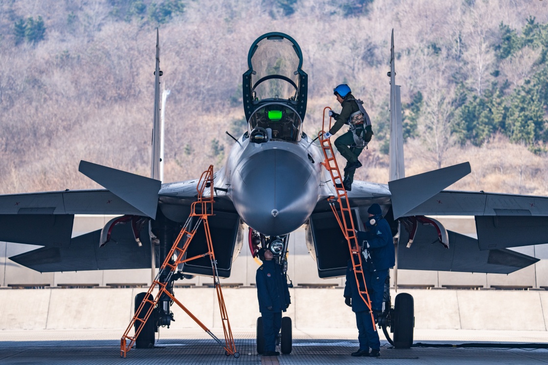 海軍航空大學某基地組織飛行訓練,飛行教官登上殲-15戰(zhàn)機(12月10日攝)。新華社發(fā)(萬全 攝)
