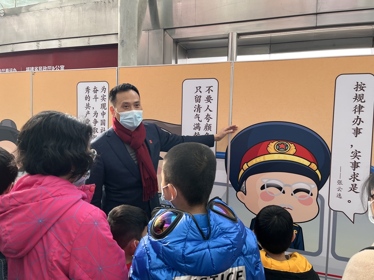 2022年1月,聞進(jìn)在福州動(dòng)車北站宣講三坊七巷名人家風(fēng)