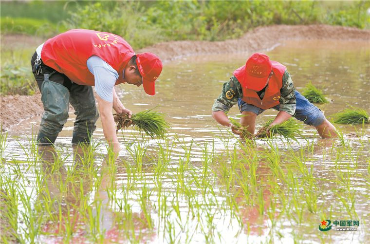 十堰市竹山縣退役軍人志愿者幫當(dāng)?shù)剞r(nóng)民插秧。朱本雙攝