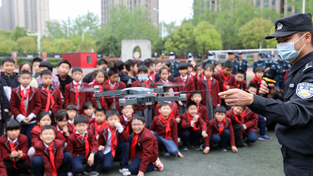 安徽省合肥市濱湖世紀社區(qū)聯(lián)合公安、消防等部門在屯溪路小學濱湖校區(qū)開展全民國家安全教育日主題活動,增強師生們的安全意識。