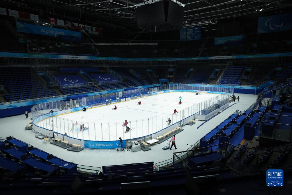 3月1日,中國(guó)殘奧冰球隊(duì)在訓(xùn)練中。當(dāng)日,中國(guó)殘奧冰球隊(duì)在國(guó)家體育館訓(xùn)練,備戰(zhàn)北京冬殘奧會(huì)。新華社記者 張可任 攝