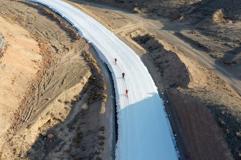 1月13日,集訓(xùn)隊隊員在甘肅白銀國家雪上項目訓(xùn)練基地訓(xùn)練中。新華社記者杜哲宇攝