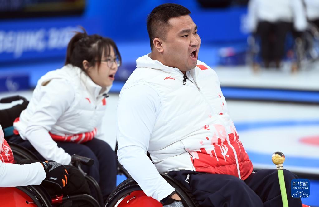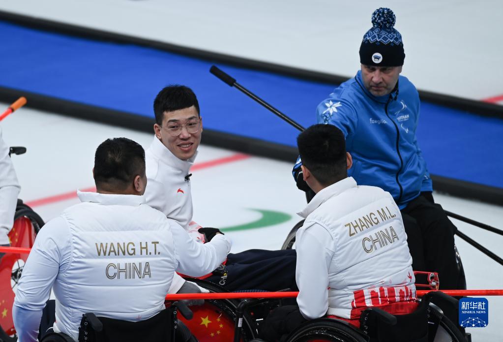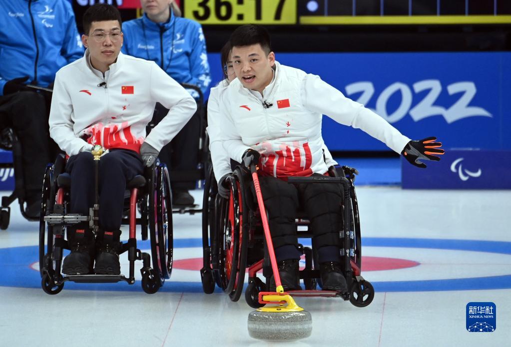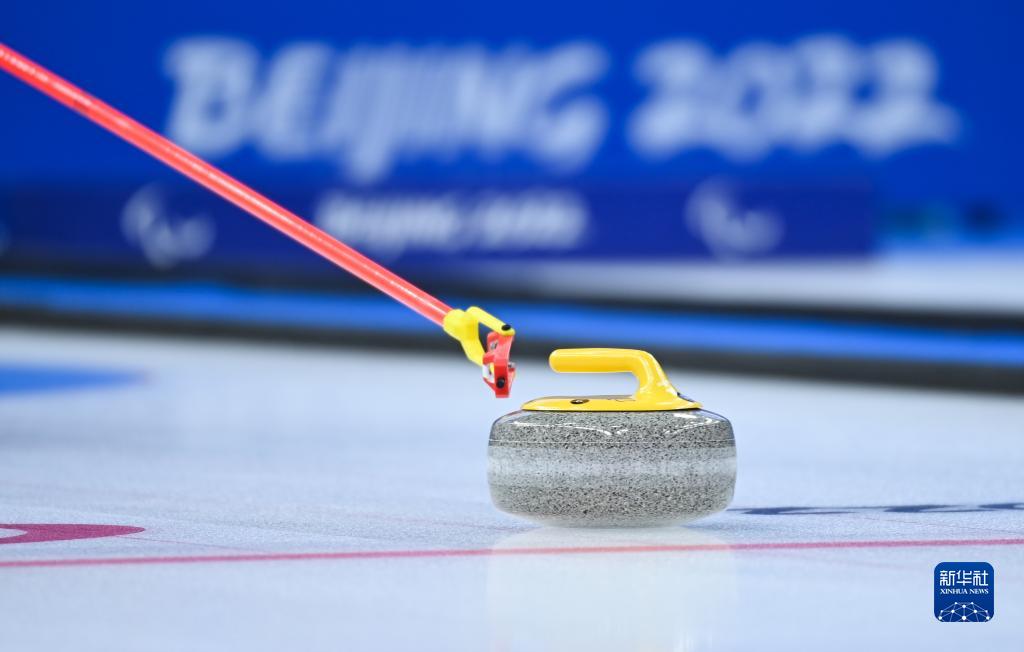 當(dāng)日,在北京國家游泳中心“冰立方”舉行的北京2022年冬殘奧會(huì)輪椅冰壺循環(huán)賽中,中國隊(duì)以9比3戰(zhàn)勝愛沙尼亞隊(duì)。