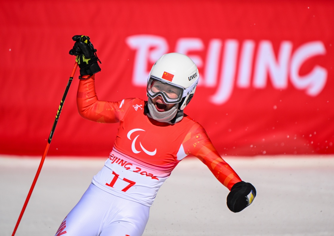 3月6日,張夢秋在北京2022年冬殘奧會殘奧高山滑雪女子超級大回轉(zhuǎn)(站姿)比賽中,她奪得該項目冠軍。新華社記者 雒圓 攝