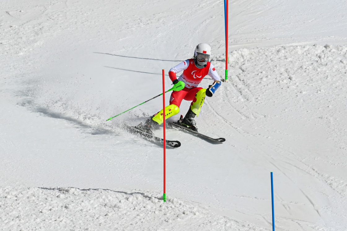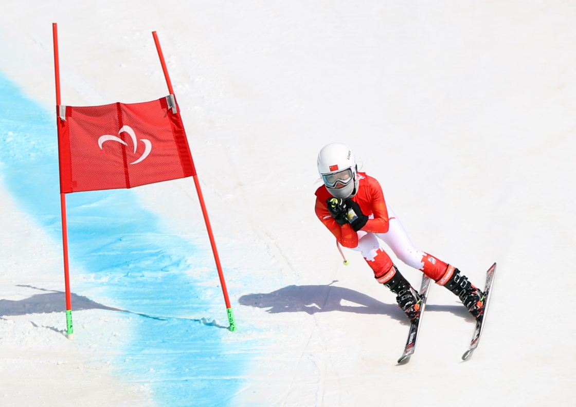 過旗門,加速、轉(zhuǎn)彎、再過旗門……從冬殘奧會的高山之巔飛馳而下的張夢秋享受著滑雪給自己的人生帶來的改變和快樂。