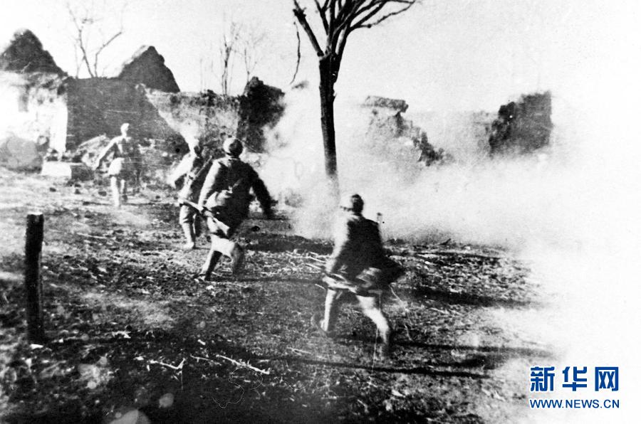 這是在淮海戰(zhàn)役中,人民解放軍突破濃煙密火,撲向國(guó)民黨軍的指揮所魯樓(資料照片)。新華社發(fā)