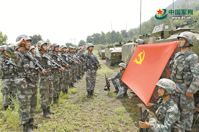 “紅一連”官兵面對黨旗宣誓。張永進攝