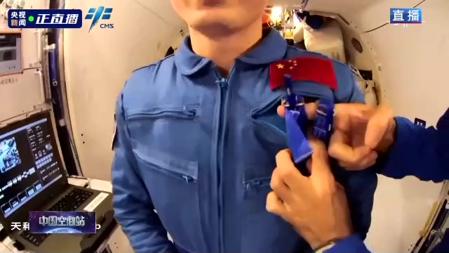 航天員 翟志剛:同學(xué)們,失重對我們的心血管有影響,對我們的骨骼有影響,對我們的肌肉有影響。為了防護(hù)失重導(dǎo)致我們肌肉萎縮,在我們空間站里,除了有跑臺、自行車、拉力器以外,還有一件秘密武器。同學(xué)們看葉老師穿的這身衣服有什么與眾不同嗎?從外表上看沒有什么區(qū)別,我們來看看它的內(nèi)部結(jié)構(gòu)。