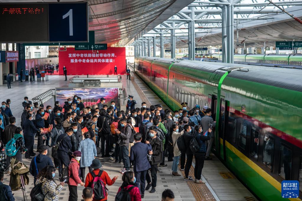 12月3日,乘客在中國(guó)昆明站準(zhǔn)備搭乘中老鐵路首發(fā)列車(chē)。新華社記者 胡超 攝