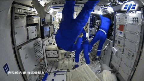 約6.5小時后,飛船與天和核心艙對接。聶海勝打開通往核心艙的艙門,乘組3人"飄"進新“家”,成為第一批住客。已經(jīng)連續(xù)工作了16個小時的他們顧不得勞累,馬不停蹄地開始布置??墒浅鮼碚У降臏椴ú幌駜晌淮蟾缒菢友杆龠m應(yīng)太空環(huán)境,一開始還能像魚兒般自由徜徉,等到新鮮勁兒被眩暈感代替后,胃里一陣陣惡心,他不得不停止工作,趕緊鉆到“臥室”躺下。