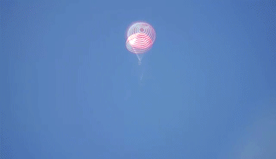 飛出黑障區(qū),飛船速度逐漸減小,距離地面10公里時,飛船拋開降落傘蓋,并迅速帶出引導(dǎo)傘。開傘過程雖然只有20多秒,但此時飛船劇烈晃動,如同被幾股力量在空中拼命拉扯。