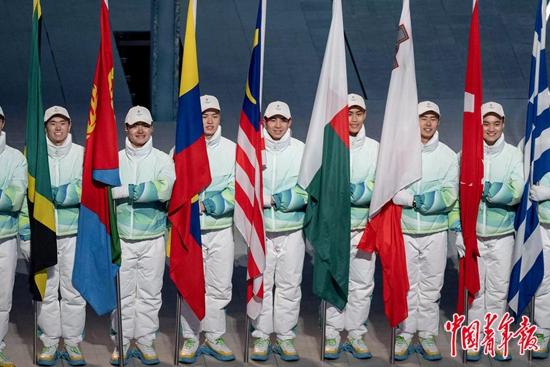 手握冬奧會(huì)代表團(tuán)旗幟,通過鏡頭向全世界微笑,4名執(zhí)旗手心中分外激動(dòng)。“作為一名大學(xué)生,能夠站在冬奧會(huì)開幕式舞臺(tái)上,首先感覺非常激動(dòng),其次是責(zé)任感和榮譽(yù)感?!笔謭?zhí)意大利國旗的宋朗說道。