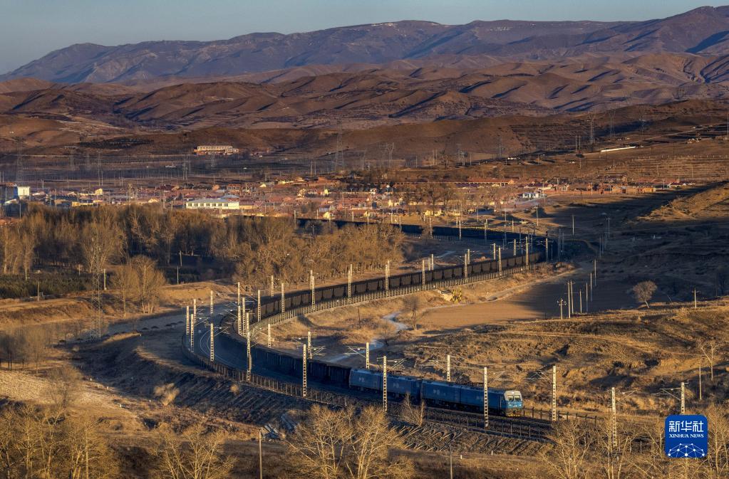 2021年12月23日,一列萬噸煤炭列車行駛在內(nèi)蒙古烏蘭察布市卓資縣境內(nèi)。新華社發(fā)(紀恩泉 攝)