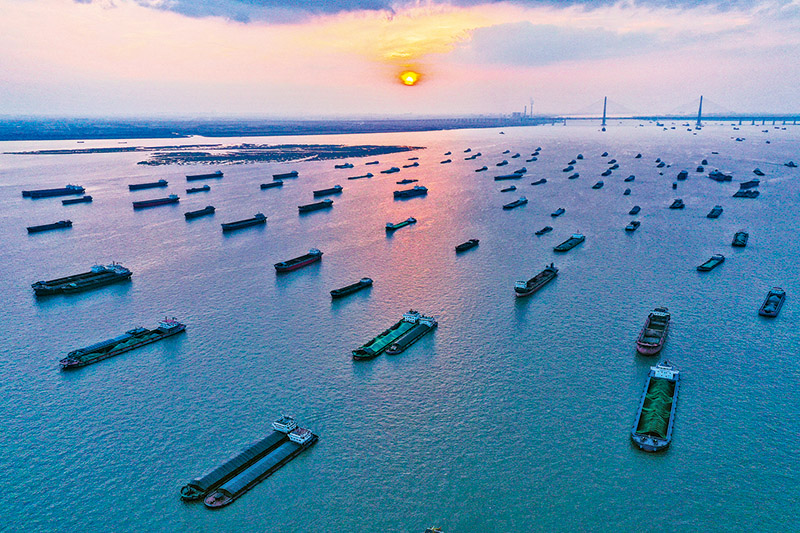 向江向海向未來,江蘇省南通市的高質(zhì)量發(fā)展彰顯長三角一體化發(fā)展新氣象。這是2021年10月25日無人機拍攝的長江南通段。 新華社記者 李博/攝