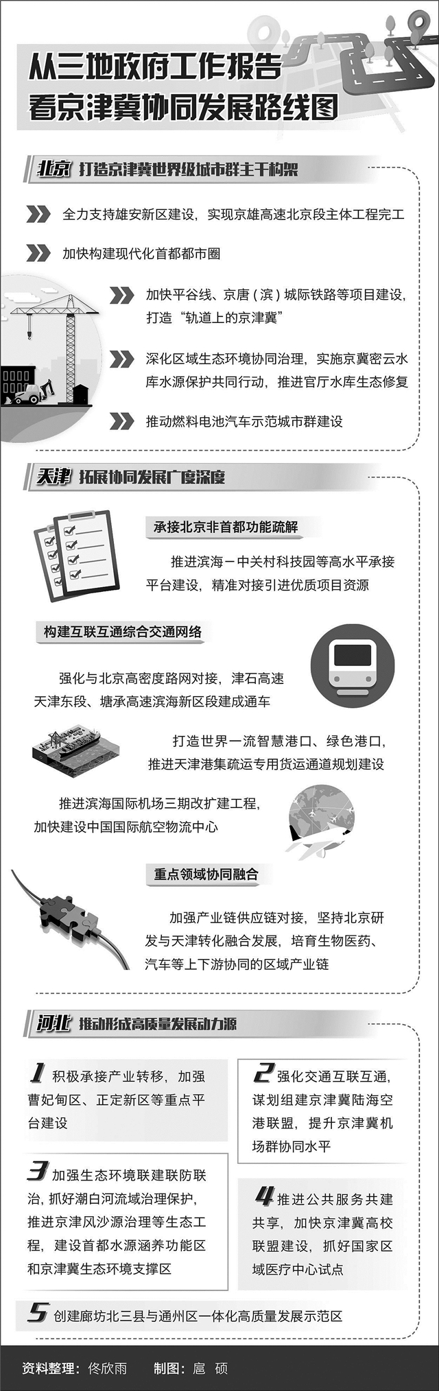 今年是“軌道上的京津冀”提出的第8個年頭。8年間,京張高鐵、京津城際延長線、京雄城際鐵路、京哈高鐵相繼通車,逐步連點畫線成網(wǎng),基本形成京津冀核心區(qū)1小時交通圈、相鄰城市間1.5小時交通圈?!半p核兩翼多節(jié)點”的京津冀機(jī)場群布局完成,北京大興國際機(jī)場等9個京津冀規(guī)劃機(jī)場全部投入使用,京冀共建共管的大興國際機(jī)場臨空經(jīng)濟(jì)區(qū)建設(shè)也全面啟動。