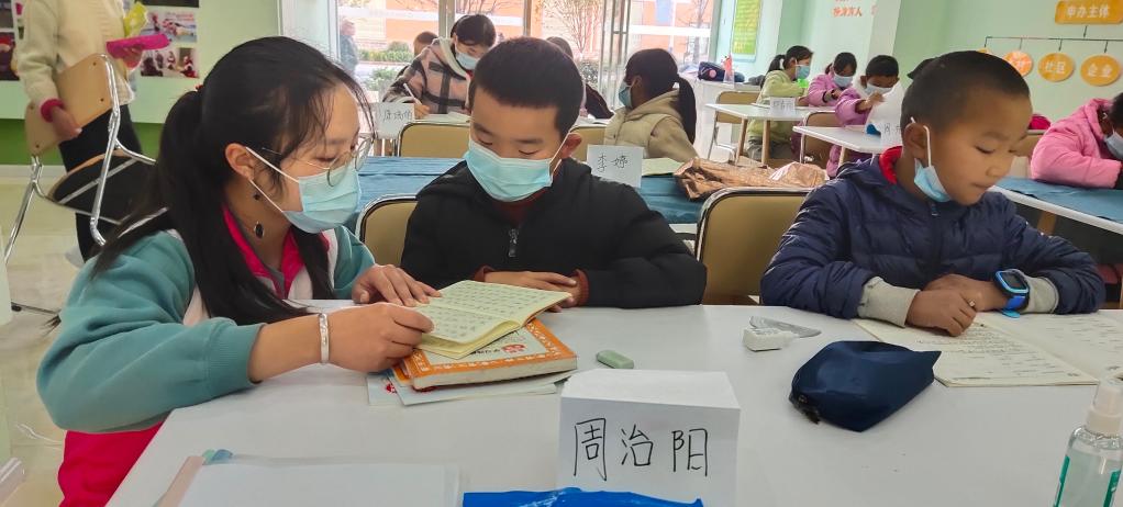云南會澤新城婦聯(lián)項目點的志愿者正為孩子們輔導功課。(受訪者供圖)