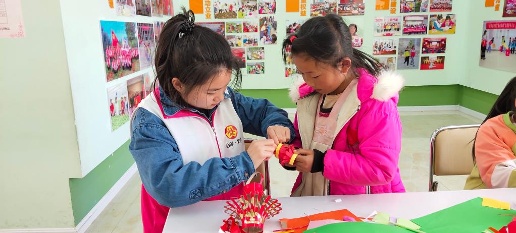 云南會澤新城婦聯(lián)項目點的志愿者正教授孩子做手工藝品。(受訪者供圖)