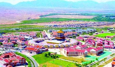 銀川市閩寧鎮(zhèn),曾經(jīng)是不毛之地的干沙灘已發(fā)展為一個(gè)新型城鎮(zhèn)。王建宏攝/光明圖片