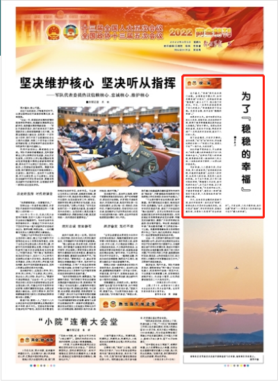 這個春天,“幸?!痹俅纬蔀闊衢T話題。全國兩會開幕之際,如何求解幸?!胺匠淌健保鯓永L好幸?!奥肪€圖”,被上上下下、線上線下所關(guān)注。對此,一位軍隊政協(xié)委員談了自己的觀點:“幸福感來源于安全感。沒有安全感,就不會有‘穩(wěn)穩(wěn)的幸福’。”
